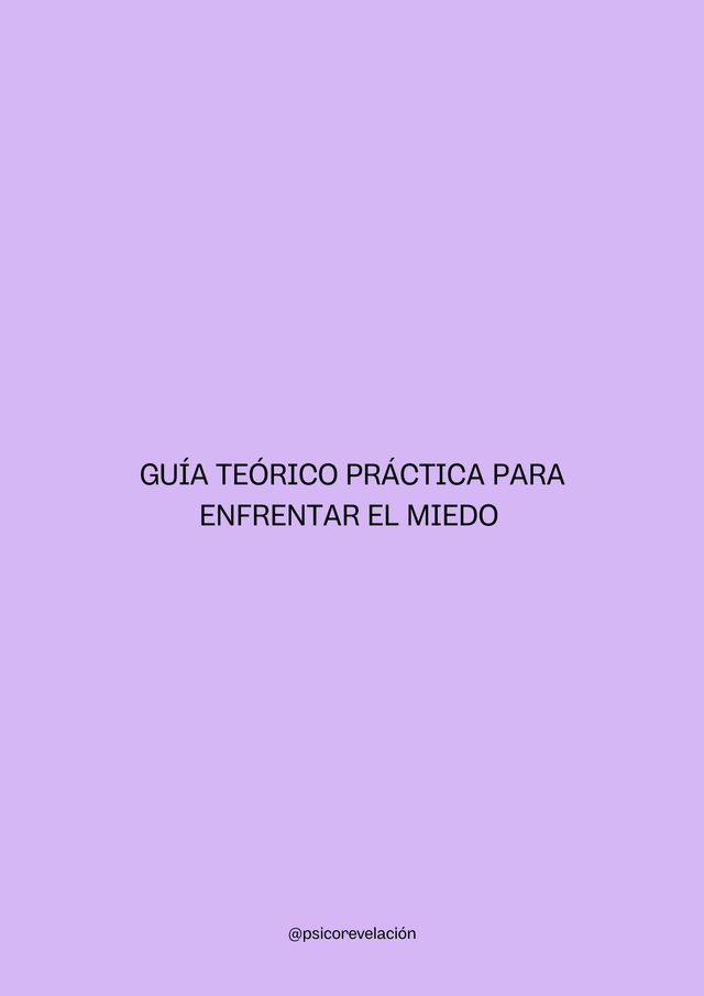 En esta guía vas a encontrar información teórica y ejercicios prácticos sobre: miedos, fobias, exposición, evitación, distorsiones del pensamiento, creencias limitantes. Técnicas de anclaje, autoregistro, fortalezas, atención plena, respiración, logros. 24 pags.